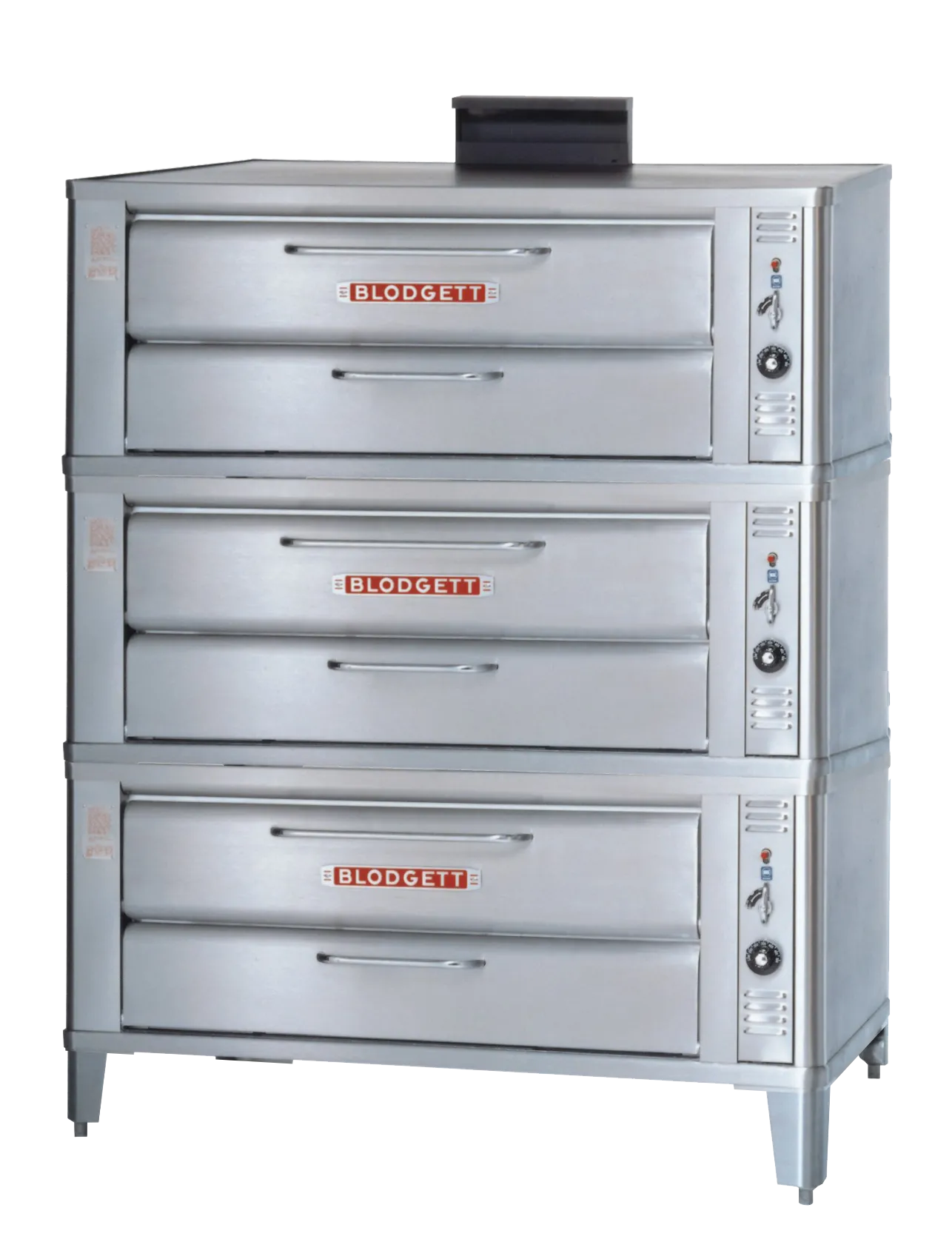 The Blodgett Deck Oven line has set industry wide standards for excellence in baking characteristics, performance and reliability. Simplicity of design and quality construction throughout assure years of trouble-free operation. Blodgett provides the strongest warranty in the business with a standard five-year door warranty! Blodgett compact pizza ovens are designed to meet the demand for equipment with low BTU input requirements without sacrificing results. With the 911P and 961P, equipment can be installed even when gas supply is limited. With a space-saving 51″ x 30″ footprint, these are ovens are idea for smaller kitchens. 911P-TPL is a triple stack oven with three 7” high baking compartments and includes 7” adjustable s/s legs, s/s draft diverter or direct vent, crown angle trim and double gas connector