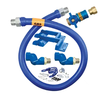 Transform your restaurant into a hub of innovation for water access and use with the Dormont Manufacturing Gas Connector Hose Kit. This kit, model number 16100KITCF2S72PS, is designed specifically for commercial restaurant use, ensuring safety and efficiency in your kitchen. The kit includes a 72" long, 1" inside diameter hose covered with a stainless steel braid and coated with blue antimicrobial PVC, providing durability and protection against bacteria growth. It also comes with a Safety Quik QDV and two Swivel MAX connectors for easy installation and flexibility. The kit includes a pair of Safety Set with hardware mounting options, ensuring secure and reliable connections. With a limited lifetime warranty, you can trust the quality and longevity of this kit. Upgrade your restaurant's gas connection system with the Dormont Manufacturing Gas Connector Hose Kit and experience peace of mind and efficiency in your kitchen.