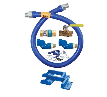 Master excellence with Dormont Manufacturing's Gas Connector Hose Kit, model number 1675KIT2S72PS. This indispensable kit ensures safe appliance positioning in commercial restaurants. The kit includes a 72" long, 3/4" inside diameter Dormont Blue Hose, covered with a stainless steel braid and coated with blue antimicrobial PVC. It also features a SnapFast QD, two Swivel MAX connectors, a full port valve, a SnapN Go, and a pair of Safety Set with hardware mounting options. With a limited lifetime warranty, this kit guarantees durability and reliability. The stainless steel braid provides extra protection against wear and tear, while the antimicrobial PVC coating ensures cleanliness and hygiene. The SnapFast QD and Swivel MAX connectors allow for easy installation and flexibility. Trust Dormont Manufacturing's Gas Connector Hose Kit to keep your commercial restaurant safe and efficient.