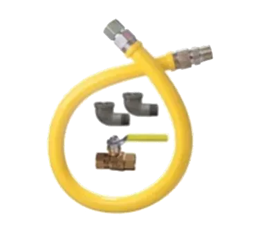 Unleash potential with versatile water access and use with the Dormont Manufacturing, 1675NPKIT24, Gas Connector Hose Kit. Designed specifically for commercial restaurant use, this kit includes a Dormont Stationary Gas Connector coated with yellow antimicrobial PVC, ensuring a safe and hygienic water supply. The kit also features a full port valve and two 90-degree elbows, providing flexibility and ease of installation. With a 3/4" inside diameter and a 24" length, this gas connector kit offers a minimum flow capacity of 291,000 BTU/hr, making it suitable for high-demand restaurant operations. Backed by a limited lifetime warranty, you can trust in the durability and reliability of this product. Whether you're setting up a new restaurant or upgrading your existing water supply system, the Dormont Manufacturing Gas Connector Hose Kit is the perfect choice for ensuring a steady and efficient water flow in your commercial kitchen.