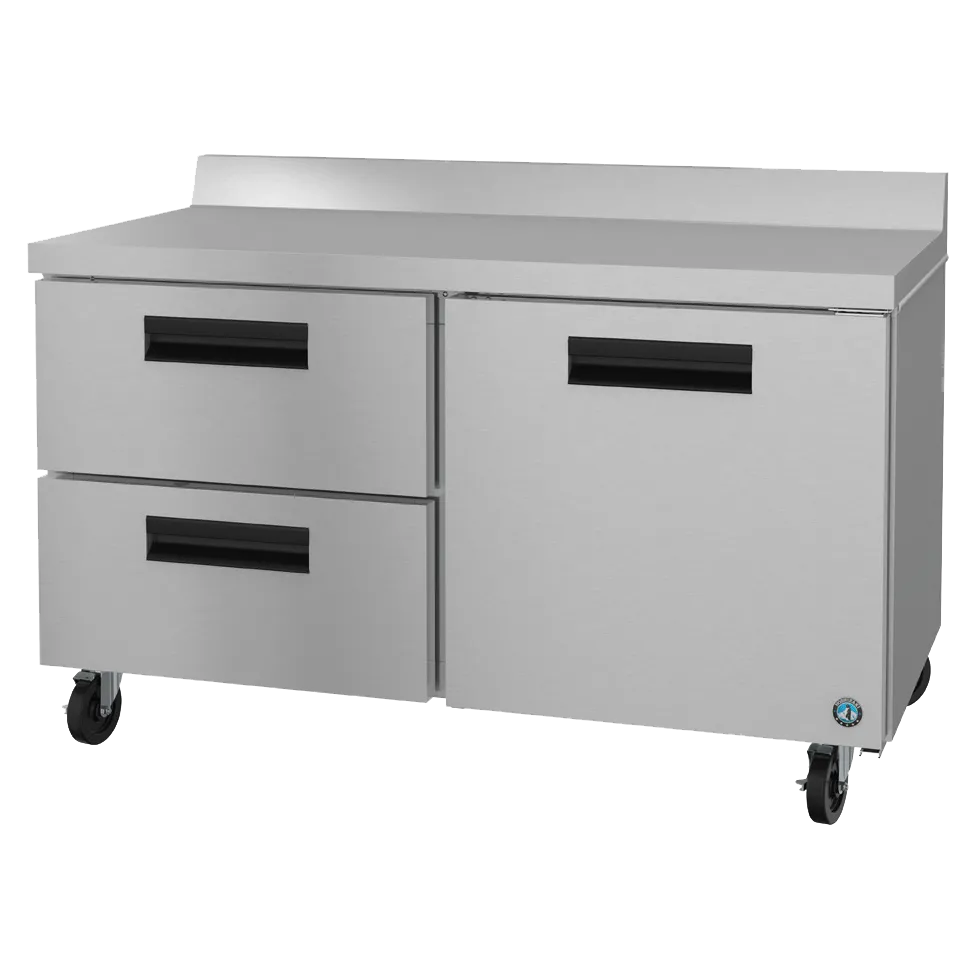 The WR60B-D2 Steelheart Series Worktop two section refrigerator with drawer/door combo is a space saving workhorse. Engineered to maintain food safe temperatures in 100°F ambient conditions. With a net capacity of 15.38 cubic feet this efficient worktop refrigerator and front air flow design is perfect for hot/tight kitchens. The WR60B-D2 is constructed of stainless steel, which protects this unit from accidental damage and rust. Plus, it is easy to clean.