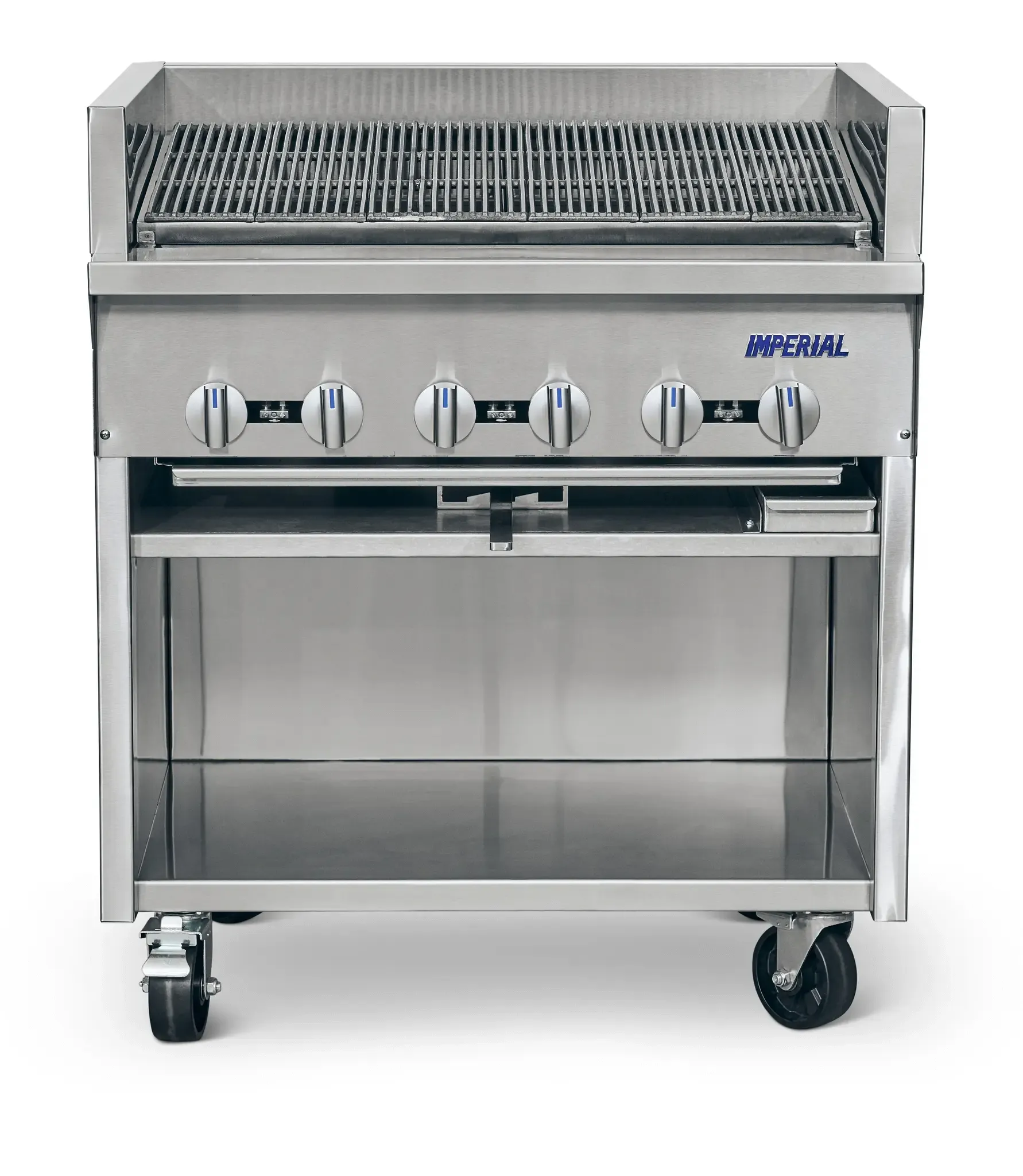Unleash your inner chef with the Imperial IABF-60 Gas Floor Model Charbroiler. Designed for commercial restaurant use, this charbroiler is a must-have for any steakhouse or grill. With its 60" size and 10 stainless steel burners, it provides ample cooking space and powerful heat distribution. The slanted (3) position cast iron top grate allows for easy cleaning and maintenance. The open cabinet base provides convenient storage for utensils and supplies, while the full-width grease gutter and removable grease can make cleaning a breeze. Made with high-quality stainless steel, this charbroiler is built to last and withstand the demands of a busy kitchen. With a BTU rating of 200,000, this charbroiler delivers exceptional cooking performance. Trust Imperial, a trusted name in commercial kitchen equipment, and elevate your restaurant's grilling game with the IABF-60 Gas Floor Model Charbroiler.