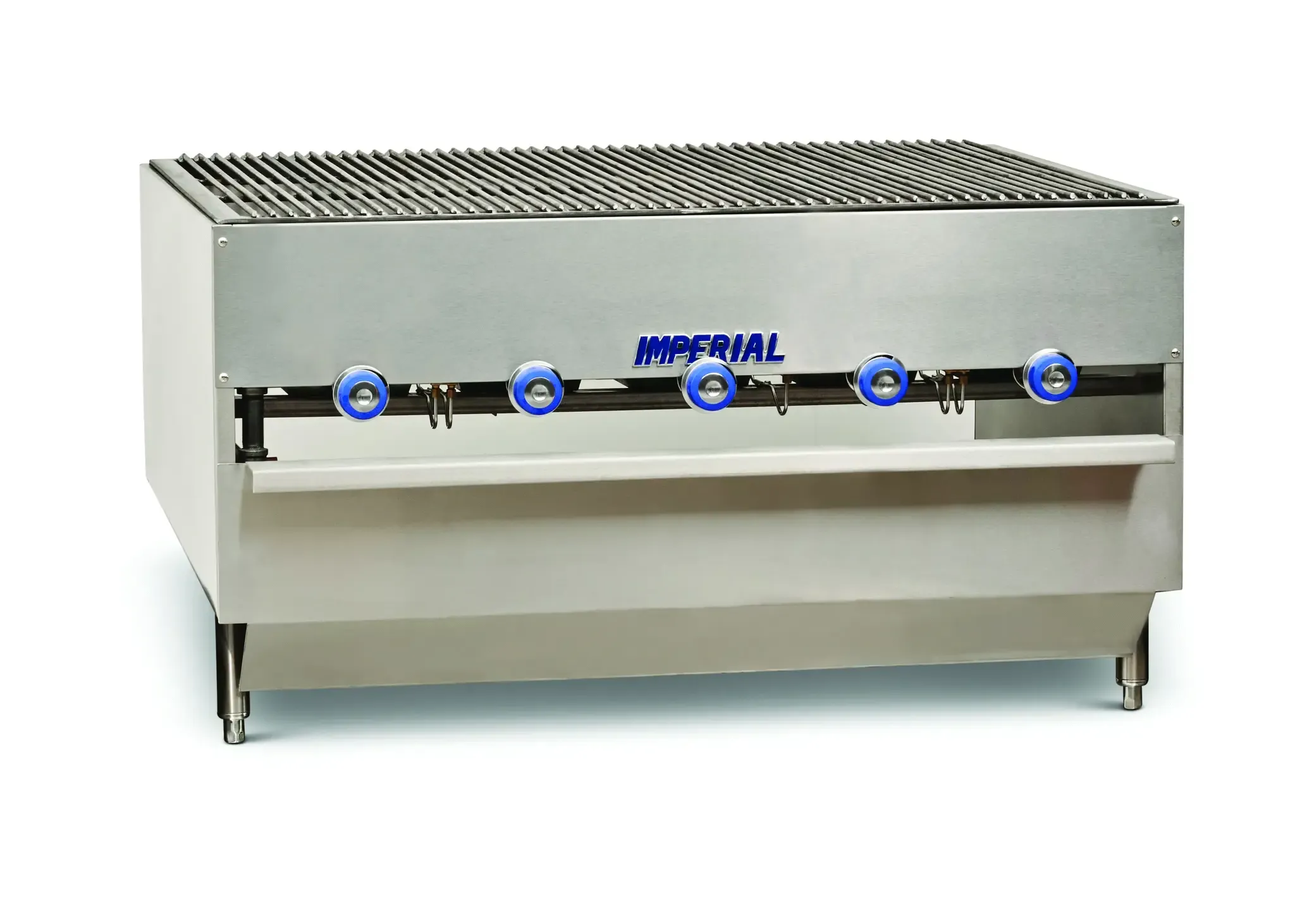 Unleash your kitchen's potential with the Imperial ICB-4827 Chicken Charbroiler. This gas countertop charbroiler is designed to meet the demands of a commercial restaurant, offering exceptional performance and durability. With its five radiant "H" burners and round rod grates, this charbroiler delivers even heat distribution and creates those perfect grill marks on your chicken. The 27-inch deep broiling surface provides ample space for cooking large quantities of chicken at once, allowing you to serve your customers efficiently. Made with a stainless steel front and sides, this charbroiler is not only easy to clean but also built to withstand the rigors of a busy kitchen. The 4-inch legs provide stability and make it easy to move the charbroiler as needed. With a powerful 200,000 BTU, this NSF-approved charbroiler is a reliable and efficient addition to any commercial kitchen. Unleash the full potential of your kitchen with the Imperial ICB-4827 Chicken Charbroiler.
