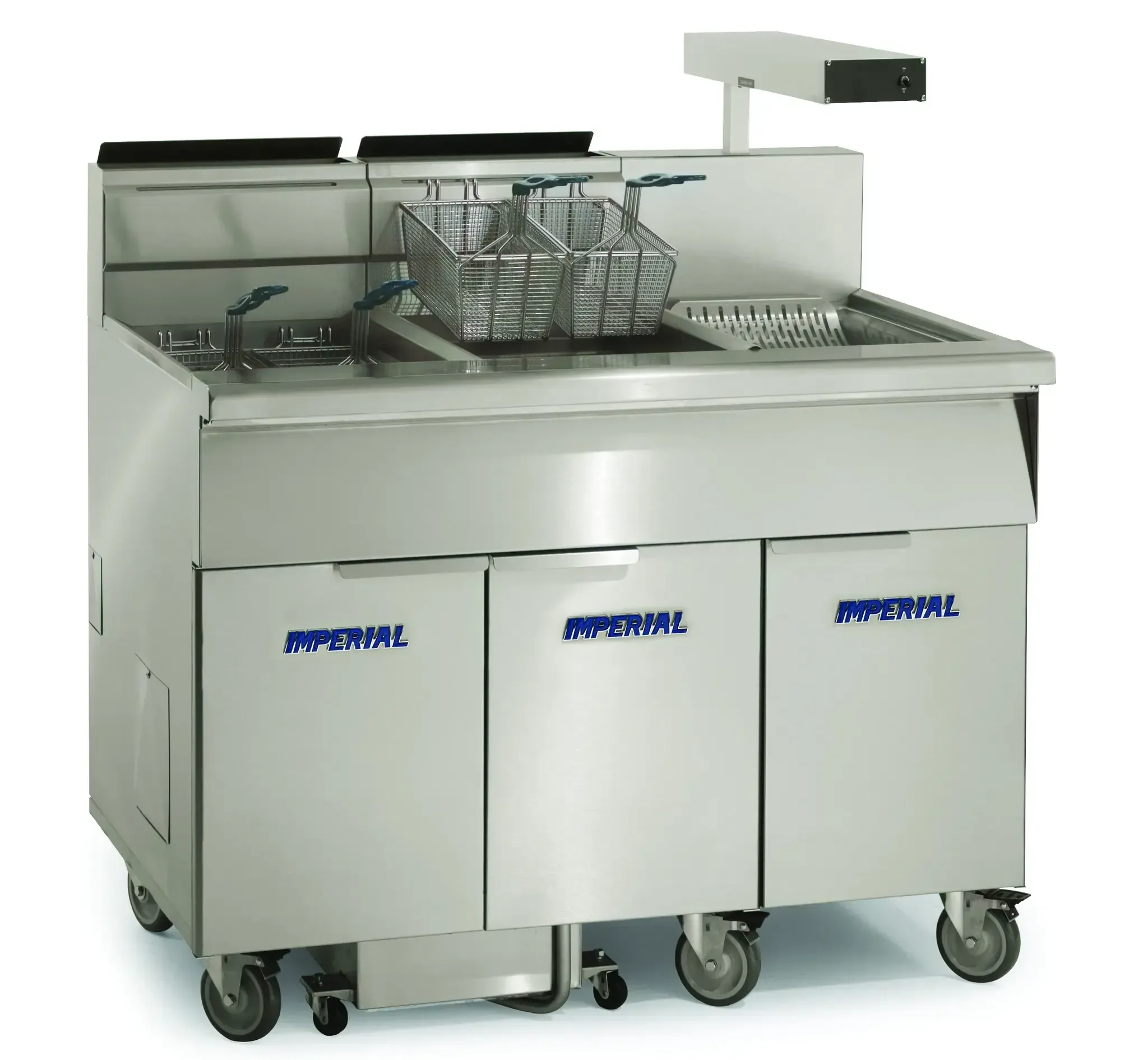 Revolutionize your cooking setup with the Imperial, IFSCB250ET Fryer, Electric, Multiple Battery. This floor model fryer is designed to meet the demands of a busy commercial restaurant kitchen. With two battery compartments, each capable of holding up to 50 pounds of food, you can fry large quantities of delicious dishes simultaneously. The immersed elements ensure quick and efficient heating, while the built-in filter system keeps your oil clean and extends its lifespan. The dump station allows for easy disposal of used oil, and the 5.5 GPM roller pump ensures a smooth and continuous flow. The electronic thermostat provides precise temperature control, guaranteeing consistent results every time. This fryer also comes with a food warmer, dump pan, joiner strips, and a filter starter kit, making it a comprehensive solution for all your frying needs. Made with stainless steel construction, this fryer is durable and easy to clean. With its casters, it can be easily moved around your kitchen. Trust Imperial to deliver high-quality and reliable equipment for your restaurant.