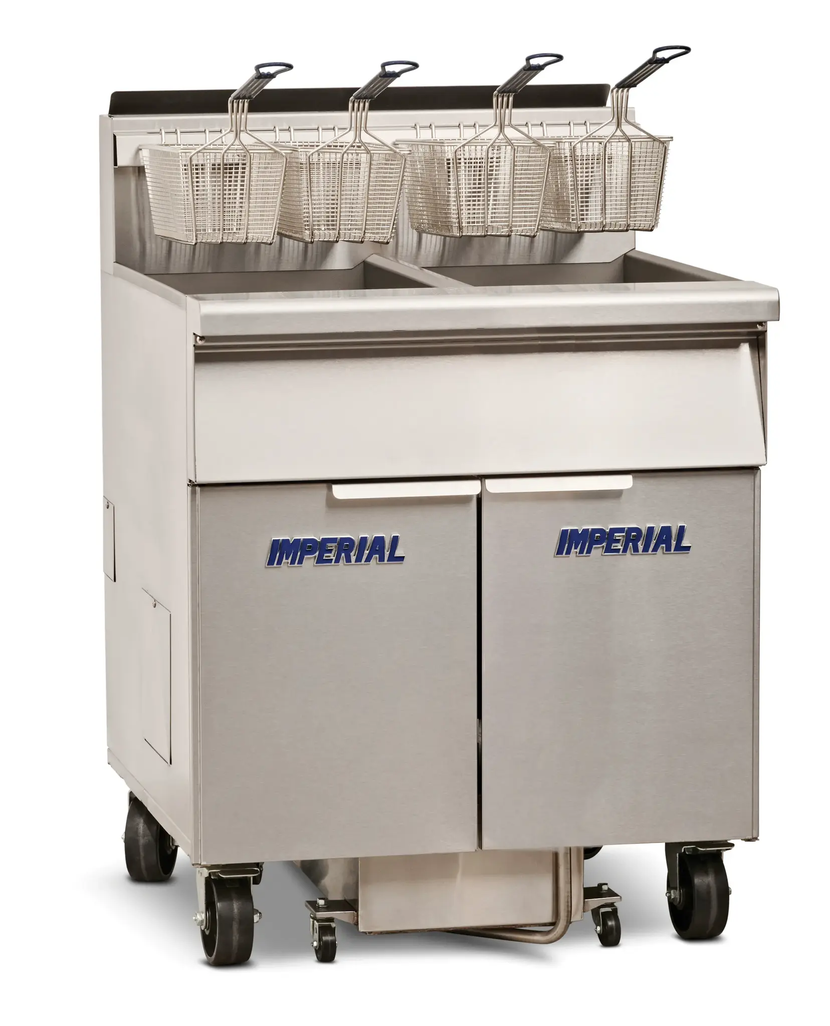 Introducing the Imperial, IFSSP275EC, Fryer, Electric, Multiple Battery - the perfect addition to drive restaurant profitability. This floor model fryer is designed to meet the demands of a busy commercial kitchen. With two battery compartments, each with a 75lb. capacity, you can fry large quantities of food simultaneously, increasing efficiency and reducing wait times. The immersed elements ensure quick and even heating, while the built-in space saver filter system keeps the oil clean and extends its lifespan. The computer controls allow for precise temperature adjustments, ensuring consistent results every time. Made with stainless steel frypots, front, and sides, this fryer is durable and easy to clean. The casters provide mobility, allowing you to easily move the fryer as needed. With certifications from cETLus, CSA Flame, CSA Star, CSA-Sanitation, and CE, you can trust the quality and safety of this Imperial fryer. Upgrade your restaurant's frying capabilities with the Imperial, IFSSP275EC, Fryer, Electric, Multiple Battery.