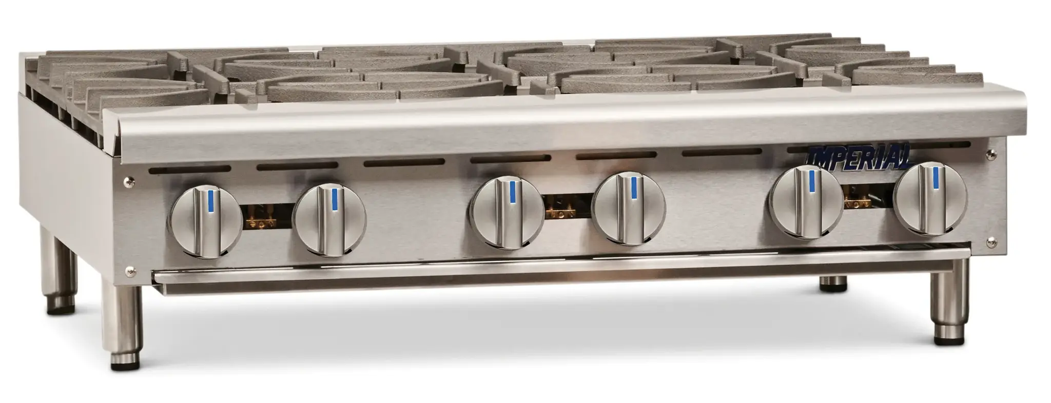 Unleash your inner chef with the Imperial IHPA-3-36 Hotplate. This gas countertop hotplate is a must-have for any commercial restaurant. With three open burners and cast iron grates, you'll have plenty of space to cook multiple dishes at once. The removable crumb tray makes cleaning up a breeze, while the stainless steel front, sides, and landing ledge ensure durability and easy maintenance. The adjustable feet and 4" legs allow for easy installation and customization to fit your kitchen setup. With a powerful 96,000 BTU, this hotplate delivers exceptional cooking performance, allowing you to serve your customers delicious meals in no time. It is CSA Flame, CSA Star, NSF, and CE certified, guaranteeing safety and quality. Upgrade your restaurant kitchen with the Imperial IHPA-3-36 Hotplate and experience the convenience and efficiency it brings to your cooking process.