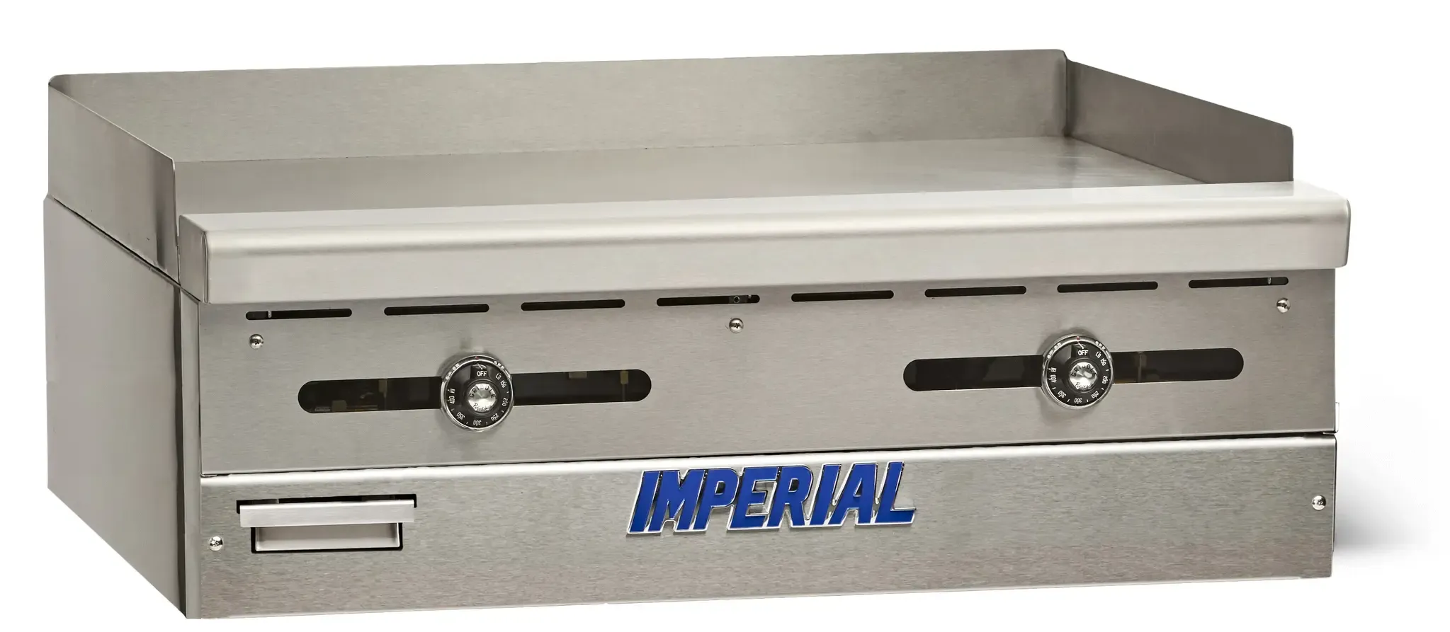 Optimize your kitchen efficiency with the Imperial, IHR-GT36-M, Range, 36" Heavy Duty, Gas. This Diamond Series Heavy Duty Range is designed to meet the demands of a commercial restaurant setting. With its modular design and thermostatic controls, this range offers flexibility and precision in cooking. The 36" griddle provides ample space for cooking a variety of dishes, while the 4"W grease gutter ensures easy cleanup. Made with stainless steel front, sides, landing ledge, and backguard, this range is not only durable but also easy to clean and maintain. With a powerful 90000 BTU, this range delivers the heat needed for fast and efficient cooking. Certified by cETLus and NSF, you can trust the quality and safety of this range. Upgrade your kitchen with the Imperial, IHR-GT36-M, Range, 36" Heavy Duty, Gas and experience enhanced productivity and performance.