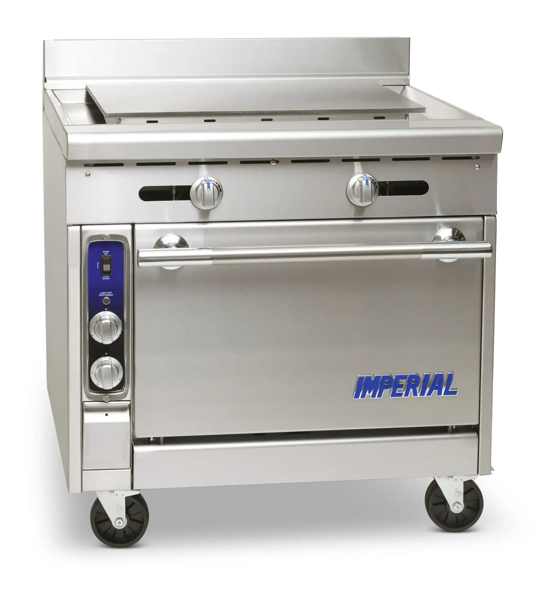 Introducing the Imperial, IHR-PL36, Range, 36" Heavy Duty, Gas. Simplify restaurant operations with this Diamond Series Heavy Duty Range. Designed for commercial restaurant use, this gas range features a 36" plancha top with a 1/2" thick steel plate, perfect for cooking a variety of dishes. The standard oven comes with a chrome rack and a grease gutter, ensuring easy cleaning and maintenance. Made with a stainless steel front, sides, landing ledge, backguard, and kick plate, this range is not only durable but also adds a sleek and professional look to your kitchen. The 6" legs with adjustable feet provide stability and flexibility in positioning. With a powerful 70000 BTU, this range delivers exceptional cooking performance. Certified by cETLus and NSF, you can trust the quality and safety of this Imperial range. Upgrade your restaurant kitchen with the Imperial, IHR-PL36, Range, 36" Heavy Duty, Gas.