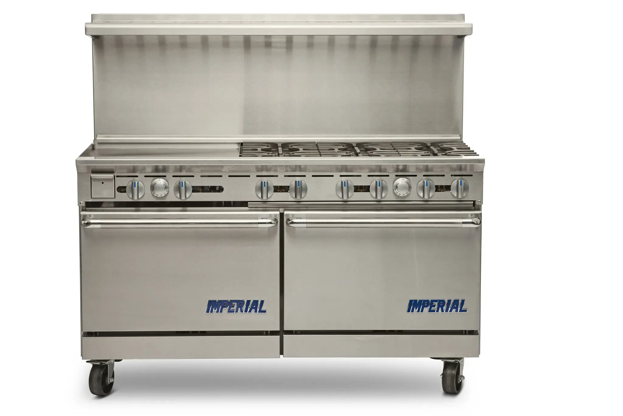Empower your kitchen staff with the Imperial IR-2-G48-XB Range, a versatile and powerful addition to any commercial restaurant. This gas restaurant range features two open burners, perfect for cooking multiple dishes simultaneously, and a 48" griddle for preparing delicious breakfast items or searing meats to perfection. The standard oven provides ample space for baking and roasting, while the open cabinet and bottom shelf offer convenient storage for pots, pans, and other kitchen essentials. The stainless steel construction ensures durability and easy cleaning, while the 3" grease trough, removable grease can, and crumb tray make maintenance a breeze. With 179,000 BTU of power, this range delivers exceptional performance and efficiency. NSF, CE, CSA Flame, and CSA Star certifications guarantee its quality and safety. Upgrade your kitchen with the Imperial IR-2-G48-XB Range and experience enhanced productivity and culinary excellence.