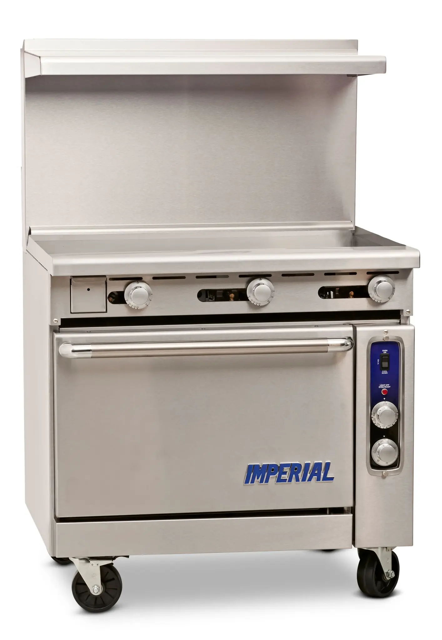 Enhance the heart of your restaurant with the Imperial IR-G36-C Range. This 36" gas restaurant range is designed to meet the demands of a busy commercial kitchen. It features a griddle and a convection oven, providing versatility for cooking a variety of dishes. The manual controls allow for precise temperature adjustments, ensuring consistent results every time. The 3" grease trough, removable grease can, and crumb tray make cleaning a breeze, saving you valuable time and effort. With its stainless steel front, sides, backguard, landing ledge, and kick plate, this range is not only durable but also adds a sleek and professional look to your kitchen. The 1/4 HP motor and 90000 BTU power ensure efficient and fast cooking. NSF, CE, CSA Flame, and CSA Star certifications guarantee the quality and safety of this product. Upgrade your restaurant kitchen with the Imperial IR-G36-C Range and experience enhanced productivity and performance.