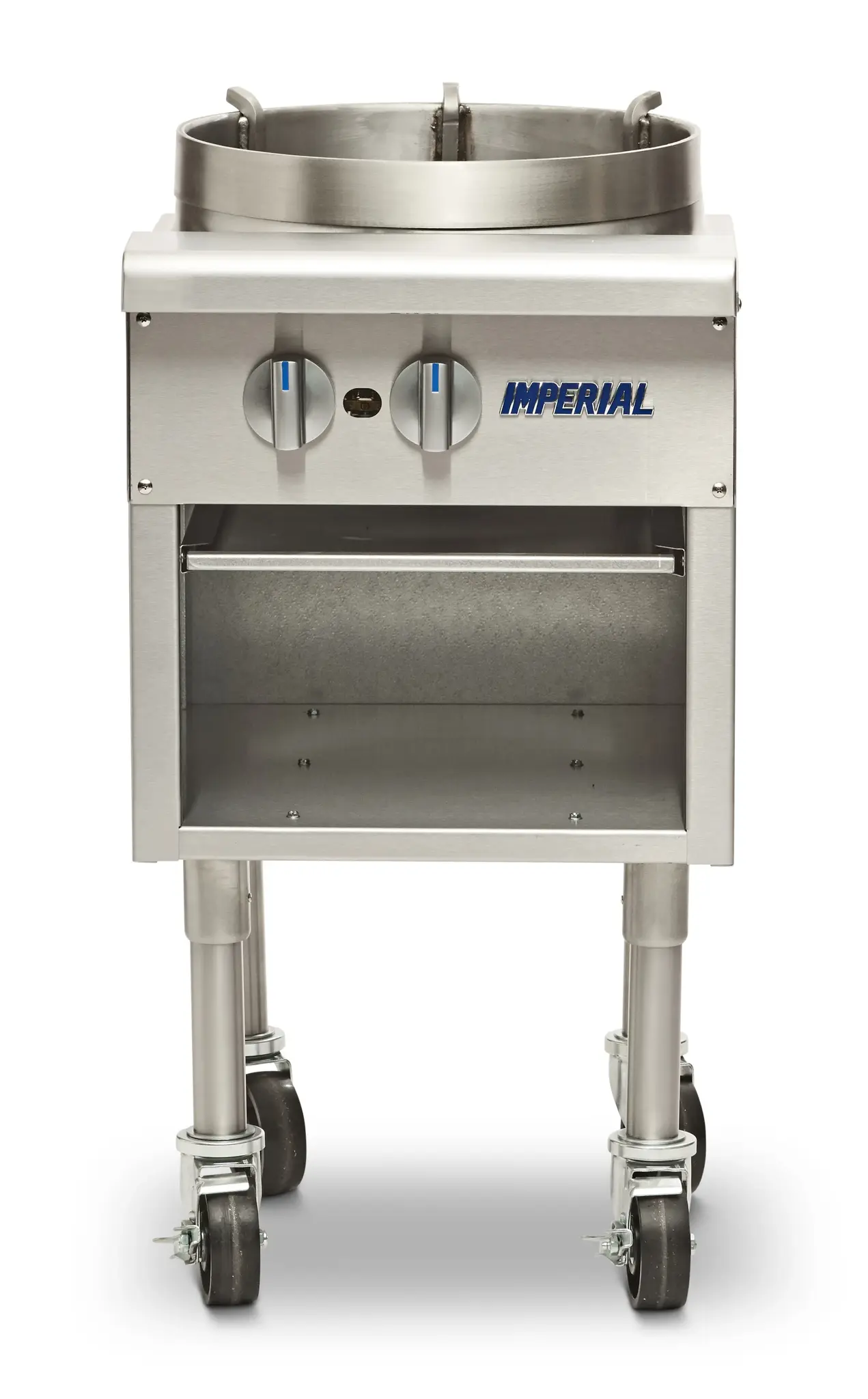 Maximize your food service potential with the Imperial ISP-18-W Gas Wok Range. Designed for commercial restaurant use, this wok range is a game-changer in the kitchen. With its powerful Tempura 3 ring burner, it delivers an impressive 90,000 BTUs of heat, ensuring quick and efficient cooking. The 16" wok opening provides ample space for stir-frying, saut ing, and deep-frying, allowing you to create a wide variety of delicious dishes. The open front cabinet and full-width drip pan make cleaning a breeze, while the removable grease can helps maintain a clean and sanitary cooking environment. Made with a stainless steel front and sides, this wok range is not only durable but also adds a sleek and professional look to your kitchen. The adjustable feet and 12" legs ensure stability and convenience. Trust Imperial, a reputable vendor in the industry, and elevate your restaurant's cooking capabilities with the ISP-18-W Gas Wok Range.