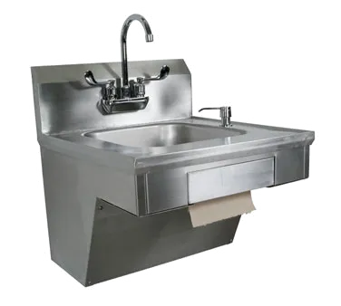 Upgrade workflow with innovative resources through the John Boos PBHS-ADA-P-STD Hand Sink. Designed specifically for commercial restaurant use, this wall-mounted sink is a game-changer for any busy kitchen. The sink features a spacious 14W x 16 front-to-back x 5 deep bowl, providing ample space for washing and rinsing dishes, utensils, and hands. Equipped with a set of splash mount faucet holes with 4 centers and a goose neck faucet, this sink ensures easy access to water at all times. The sink also includes a drain basket, soap, and towel dispenser, making it a convenient all-in-one solution. Constructed with durable stainless steel, this sink is built to withstand the demands of a busy restaurant environment. Plus, it is ADA compliant and NSF and CSA-Sanitation certified, guaranteeing safety and hygiene. Upgrade your restaurant's efficiency and cleanliness with the John Boos PBHS-ADA-P-STD Hand Sink.
