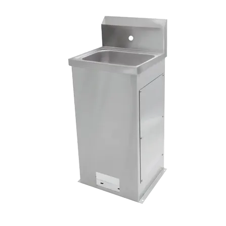 Enhance workflow with intelligent solutions through the John Boos PBHS-F-1410 Hand Sink. Designed specifically for commercial restaurant use, this floor-mounted sink is a must-have for any busy kitchen. The sink features a spacious 13-1/2" wide by 9-1/2" front-to-back by 5" deep bowl, providing ample space for washing and rinsing dishes, utensils, and hands. The 9-3/4" high backsplash helps prevent water splashes and keeps your walls clean. With a centered splash mount faucet hole and a 3-1/2" gooseneck spout, this sink offers easy access to water for quick and efficient cleaning. The 3-1/2" drain opening with a basket drain ensures proper drainage, while the double foot valves PB-FV-2LF allow for hands-free operation, promoting hygiene and preventing cross-contamination. Made of durable 16-gauge stainless steel, this hand sink is built to withstand the demands of a busy restaurant kitchen. Upgrade your restaurant's efficiency and cleanliness with the John Boos PBHS-F-1410 Hand Sink.