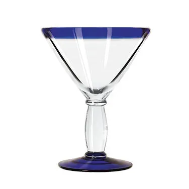 Enhance presentations effortlessly with Libbey Glass, 92305, Glass, Cocktail / Martini. This hand-blown cocktail glass is designed to elevate your drink service in a commercial restaurant setting. With a capacity of 10 oz., it is perfect for serving classic cocktails and martinis with a touch of elegance. The cobalt blue rim and foot add a pop of color, making it visually appealing to customers. Made from anneal treated glass, this cocktail glass is durable and can withstand the rigors of a busy restaurant environment. It is dishwasher and microwave safe, ensuring easy cleaning and versatility. The Aruba design adds a unique flair to your drink presentation, making it a conversation starter for your guests. With Libbey Glass, you can trust in the quality and authenticity of this cocktail glass, making it a valuable addition to your restaurant's glassware collection.
