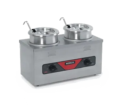 Introducing the Nemco 6120A-CW-ICL Food Pan Warmer/Cooker, a must-have for modern restaurant excellence. This countertop cooker warmer is designed to elevate your commercial kitchen's efficiency and performance. With a 4-quart twin well capacity, stainless steel construction, and adjustable heavy-duty individual thermostat controls, this unit ensures precise temperature control for your culinary creations. The included inset, cover, and ladle make serving a breeze, while the 6-foot cord provides flexibility in placement. Boasting 1000 watts of power and 8.3 amps, this Nemco food pan warmer/cooker is a reliable workhorse that can handle the demands of a busy restaurant kitchen. Whether you're keeping soups, sauces, or other hot foods at the perfect serving temperature, this versatile unit delivers consistent results. Trust Nemco for quality and performance in every dish.