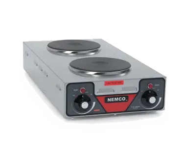 Elevate Your Restaurant Standards with the Nemco, 6310-3, Hotplate, Countertop, Electric. This vertical double burner is designed to meet the demands of a commercial restaurant setting. With its brushed stainless steel construction and cast iron alloy burners, this hotplate is built to withstand the rigors of a busy kitchen. The six-position temperature control allows for precise cooking, while the built-in thermo protection ensures safety and prevents overheating. The .5kw rear and 1.5kw front burners provide ample power for cooking a variety of dishes. With 2000 watts of power and a 16.7 amp capacity, this hotplate is ready to handle any culinary challenge. The cord and 5-20P plug make installation a breeze. Trust Nemco to deliver reliable and high-quality equipment for your restaurant.