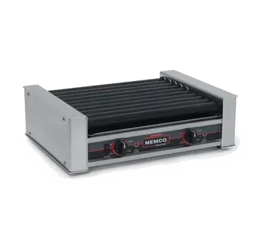 Revolutionize your restaurant workflow with the Nemco 8018SX-230 Hot Dog Grill. This Roll-A-Grill features 10 GripsIt coated rollers, allowing you to cook up to 18 hot dogs at once, serving a whopping 360 per hour. The aluminum and stainless steel construction ensures durability and easy cleaning, making it perfect for busy commercial restaurant use. With two 7-setting heat control switches and a powerful motor, you have complete control over the cooking process. The 950-watt SCHUKO CEE7-7.230v, 4.1 amp power supply ensures efficient and consistent cooking. This hot dog grill is CE certified, guaranteeing its quality and safety. Whether you're running a food truck, concession stand, or cafeteria, the Nemco 8018SX-230 Hot Dog Grill is a must-have for serving delicious hot dogs quickly and efficiently. Upgrade your restaurant equipment today and experience the difference.