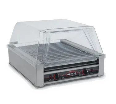 Revolutionize your restaurant workflow with the Nemco, 8045N Hot Dog Grill. This Roll-A-Grill Narrow Hot Dog Grill is designed to meet the demands of a busy commercial restaurant. With 16 chrome rollers and a capacity of 45 hot dogs per batch, this grill can produce up to 900 hot dogs per hour, ensuring that you can keep up with high customer demand. The aluminum and stainless steel construction not only guarantees durability but also makes cleaning a breeze. Equipped with two 7-setting heat control switches and two motors, you have full control over the cooking process, allowing you to achieve perfectly cooked hot dogs every time. The Nemco, 8045N Hot Dog Grill is NSF and cETLus certified, ensuring its safety and compliance with industry standards. Upgrade your restaurant's hot dog game with this efficient and reliable grill.